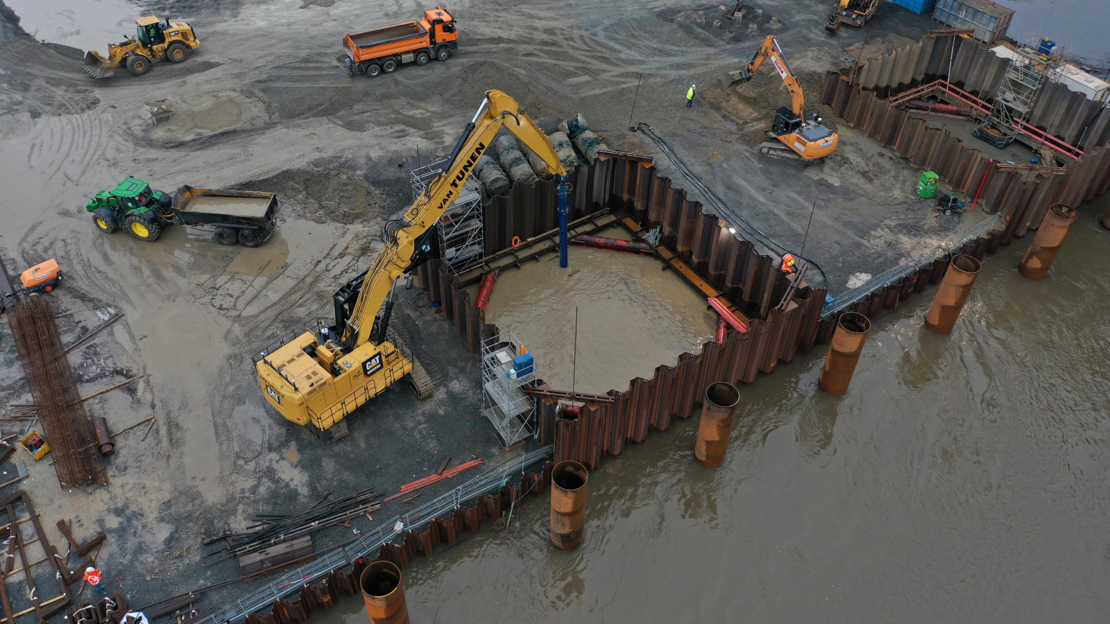 2020 - 2x bouwkuip uitgegraven voor nieuwe Brug over rivier de Rijn